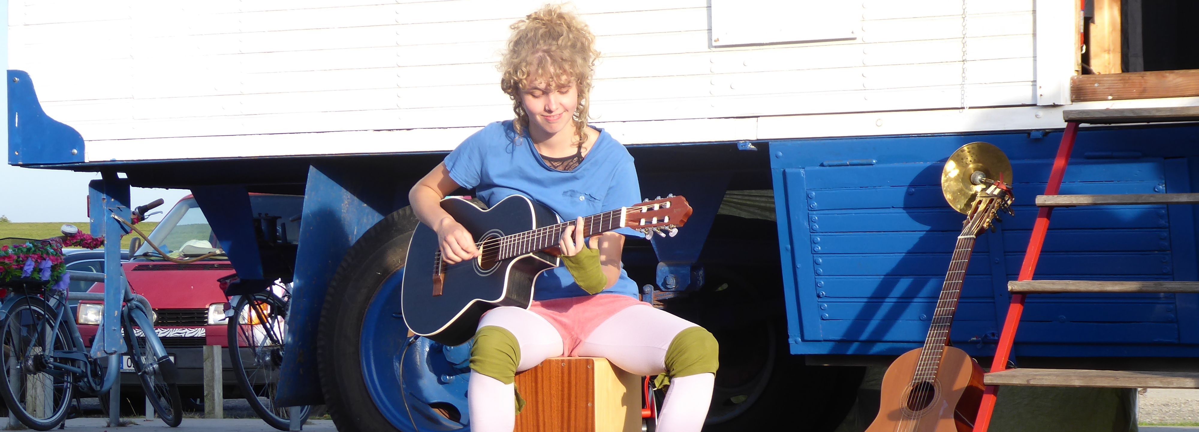 Wir kommen mit unserem Trecker angefahren, und an diesem Trecker hinten dran hängt das Herzstück des Projektes: Ein zum Kultur-Kiosk umgebauter WildwuX-Zirkuswagen. Mit diesem Kiosk stellen wir uns dann bei euch auf - beim Jugendtreff, auf den Schulhof, bei der Skate-Anlage… - direkt zwischen die Jugendlichen, packen aus und legen los.